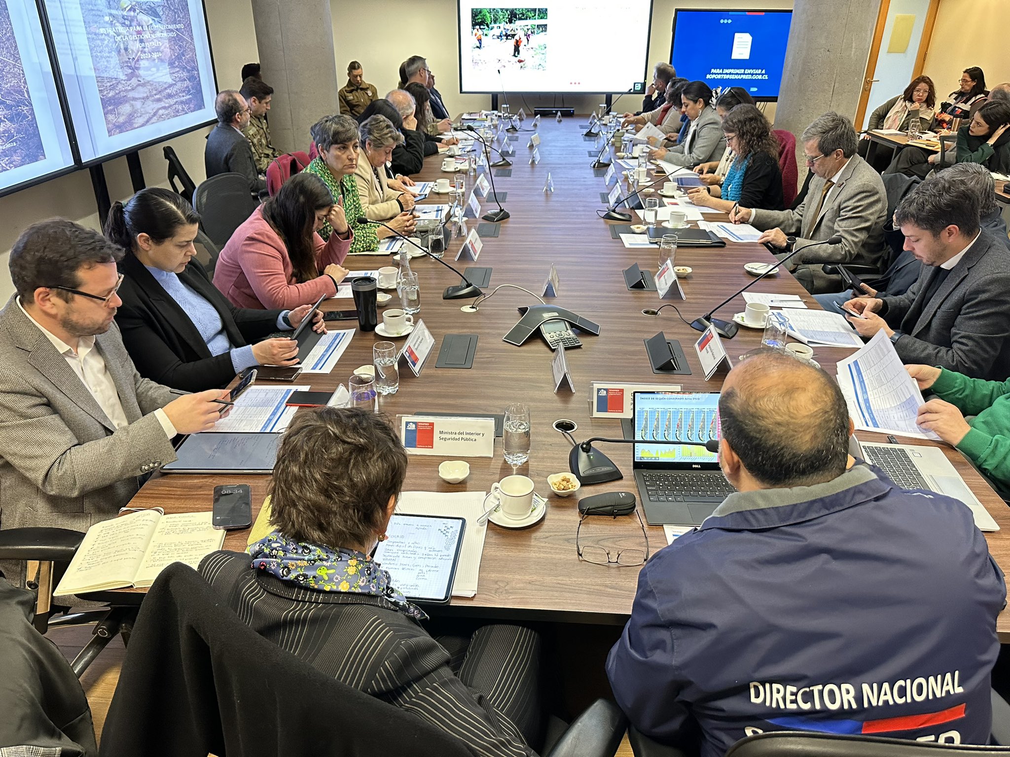 En la reunión, encabezada por la Ministra del Interior y Seguridad Pública, Carolina Tohá, el Director Nacional de SENAPRED, Álvaro Hormazábal, junto al Director Ejecutivo de CONAF, Christian Little, presentaron la primera Estrategia para el Fortalecimiento de la Gestión en Incendios Forestales, iniciativa coordinada por SENAPRED en conjunto con los organismos del Sistema.